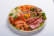 オマール海老・特選黒毛和牛ハンバーグ・ローストビーフ・大海老のチリソース・鴨のロースト・サンドイッチなどの